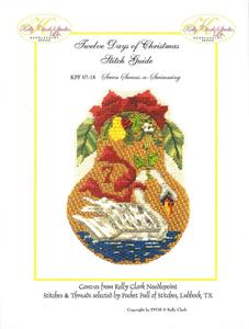7 Swans a Swimming Pear Shaped Canvas & 4 Page STITCH GUIDE with Stitch Suggestions By Kelly Clark Studio .