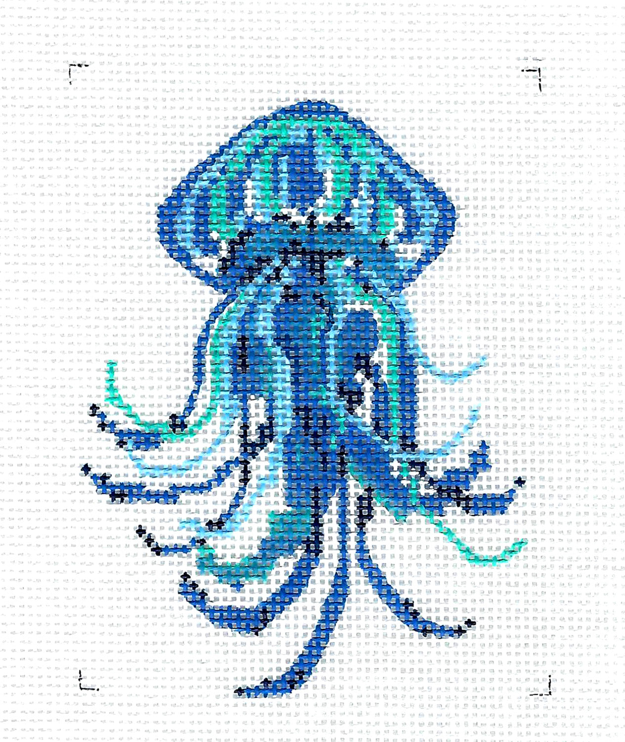 Sea Creatures ~ Blue Lagoon JELLYFISH handpainted Needlepoint Canvas or Ornament by Kelly Clark