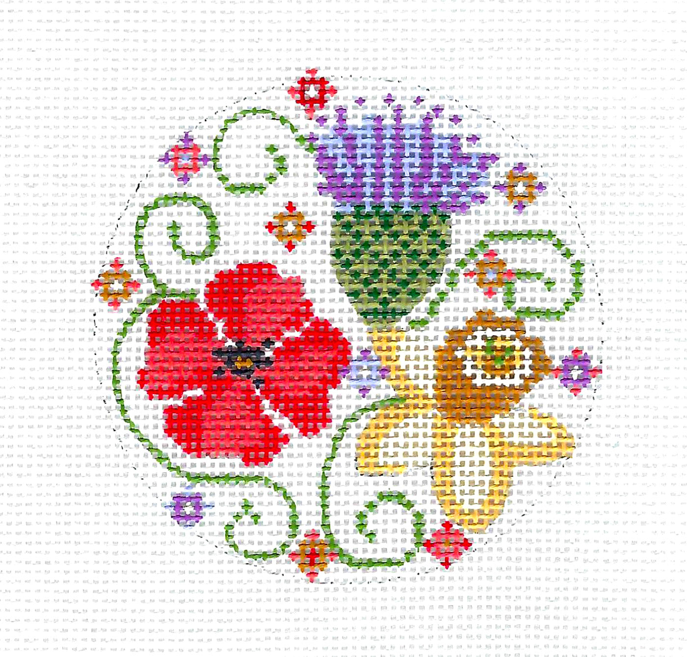 3" Round ~ UK Florals Design International handpainted 3" Round 18 Mesh Needlepoint Canvas by CH Designs from Danji