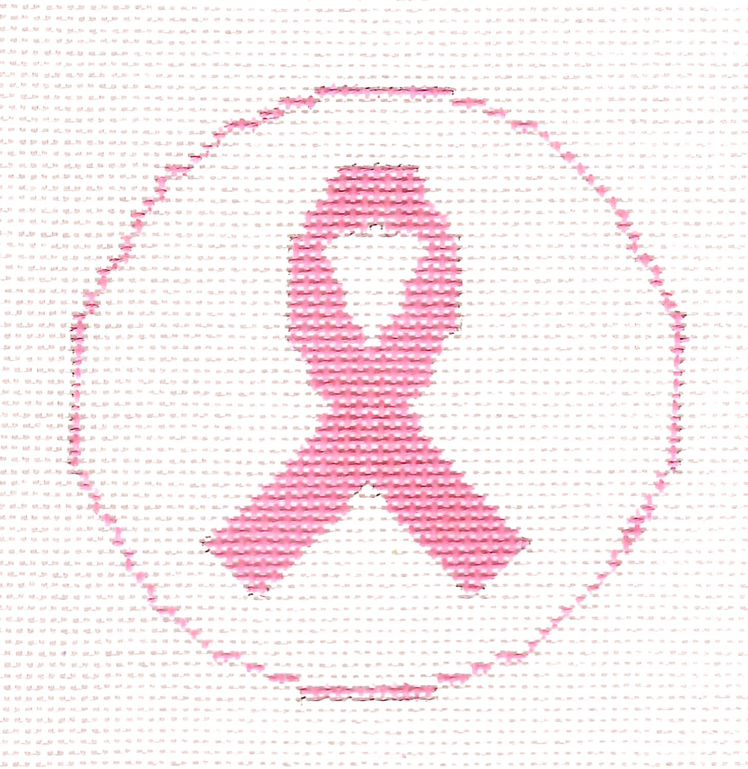 Cancer ~ Pink Ribbon of Hope ~ 3" Round handpainted 18 mesh Needlepoint Canvas Ornament by LEE
