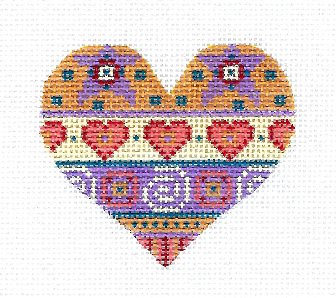 HEART ~ Heart #4 with Ribbon of Red Hearts 18 Mesh Needlepoint Ornament Canvas by CH Design from Danji