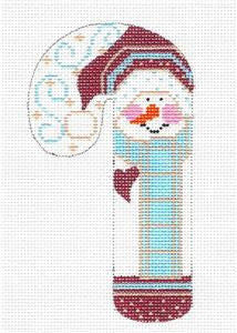 Medium Candy Cane ~ Snowman in Blue Scarf HP Needlepoint Canvas CH Designs - Danji