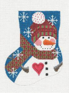 Mini Stocking ~ Snowman with Heart on Handpainted 18 mesh Needlepoint Canvas by Danji