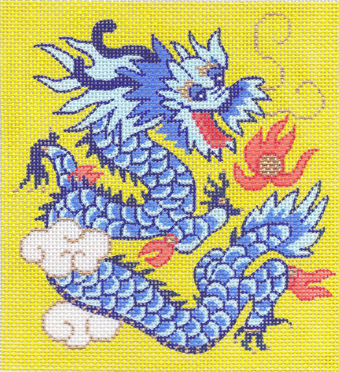 Dragon Canvas ~ Oriental Imperial Blue Dragon 18 Mesh handpainted Needlepoint Canvas ~ BG Insert by LEE