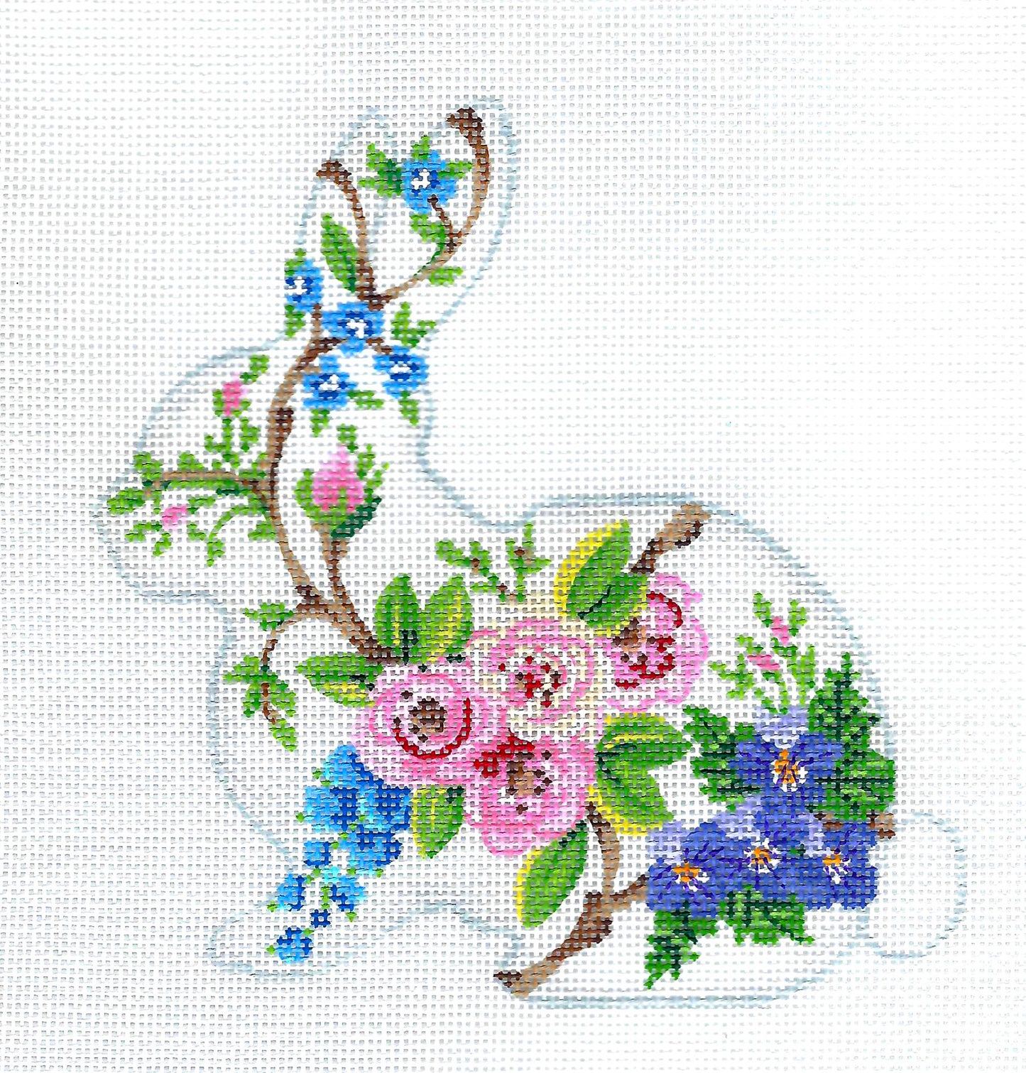 A Large Elegant 5.75" tall by 5.5" wide design by Kelly Clark. Beautifully hand painted canvas on 18 mesh mono canvas.
