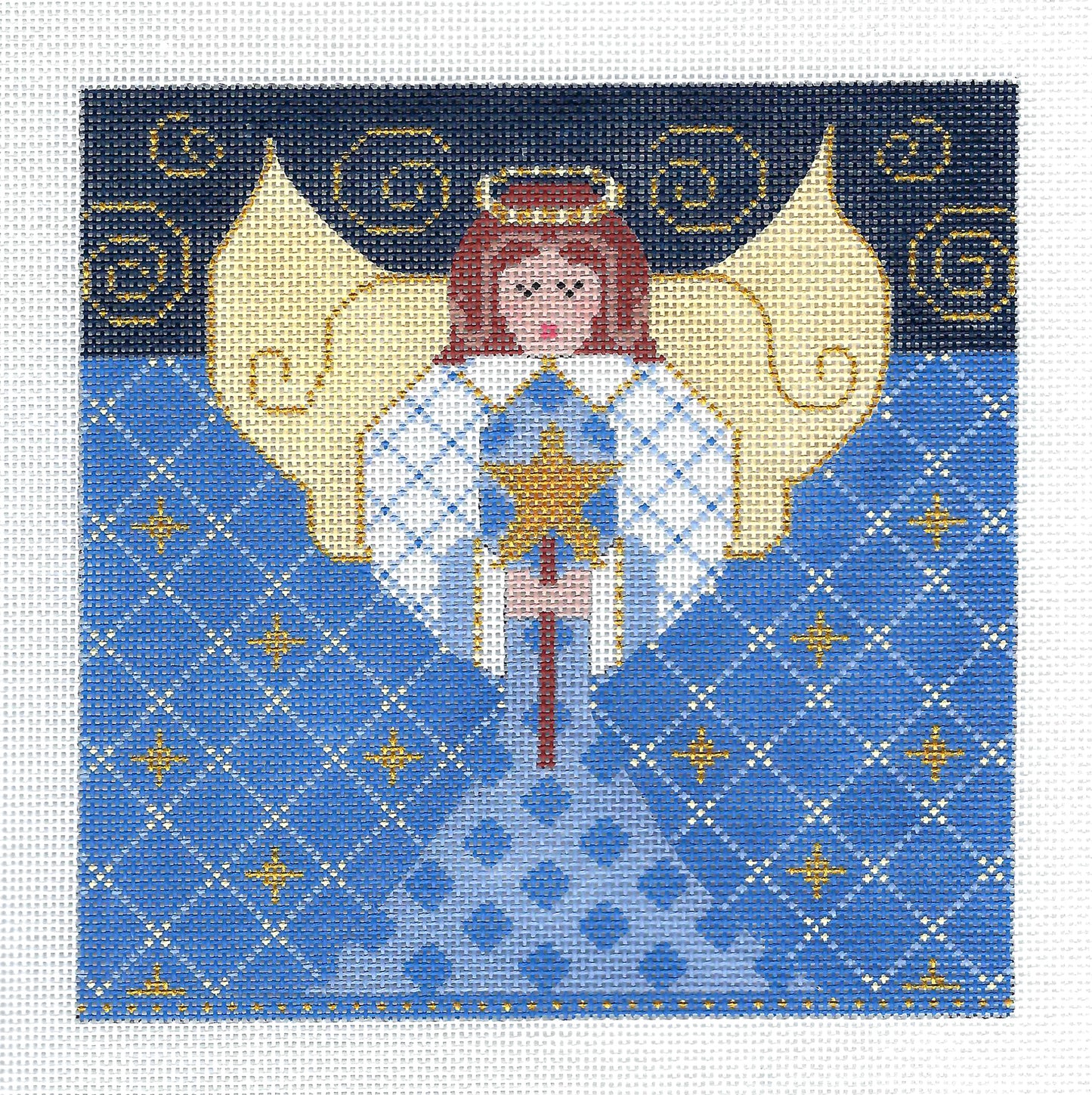 Roll Up Ornament ~ Large Blue Christmas Angel with Star Roll Up Ornament handpainted Needlepoint Canvas CH Designs ~ Danji