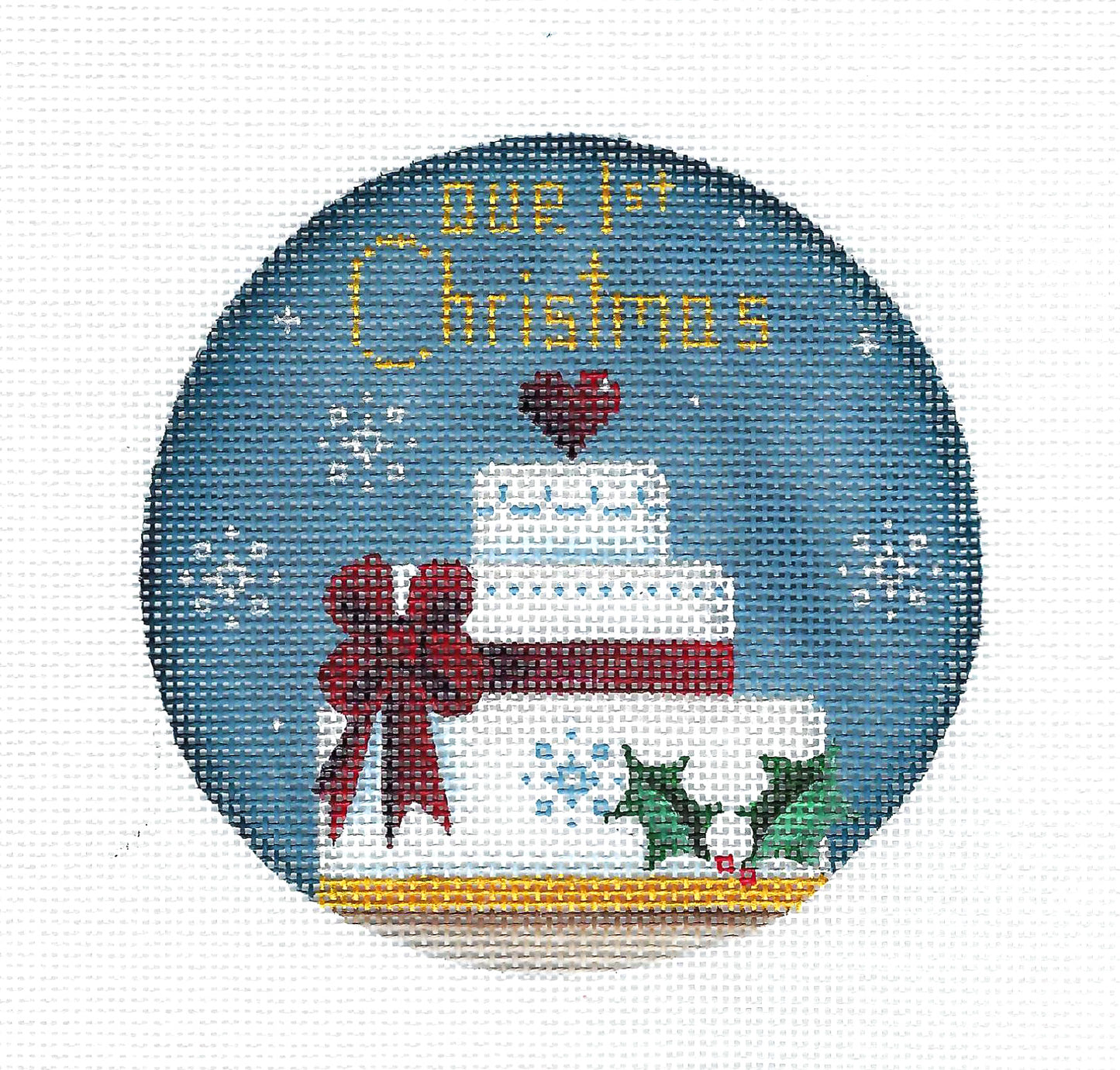 Christmas ~ Our 1st Christmas Together Wedding Cake handpainted 4" Needlepoint Canvas by Rebecca Wood