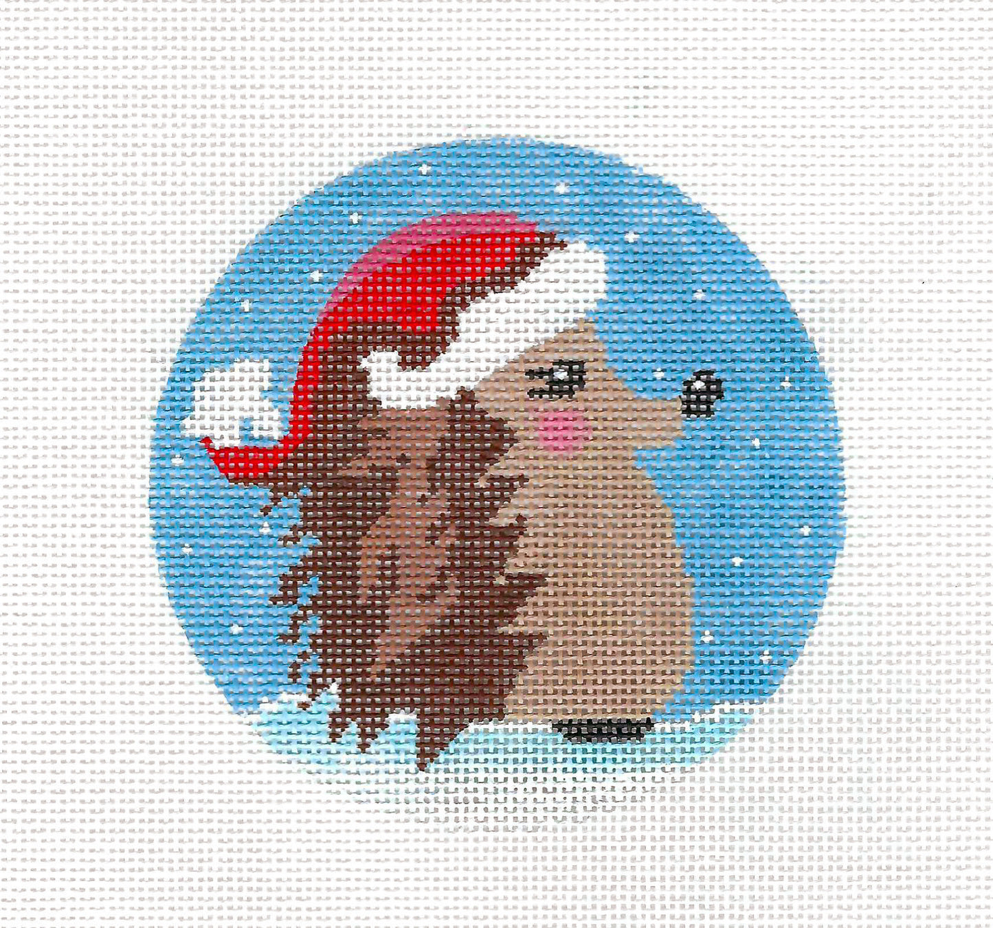 Hedgehog Christmas ~ Christmas Santa Hat Hedgehog 18 Mesh handpainted 4" Rd. Needlepoint Canvas by ZIA from Danji