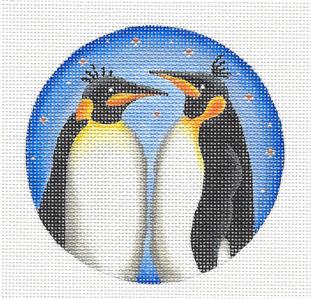 Round ~ 2 Emperor Penguins Family handpainted Needlepoint Canvas by Rebecca Wood~MAY NEED TO BE SPECIAL ORDERED