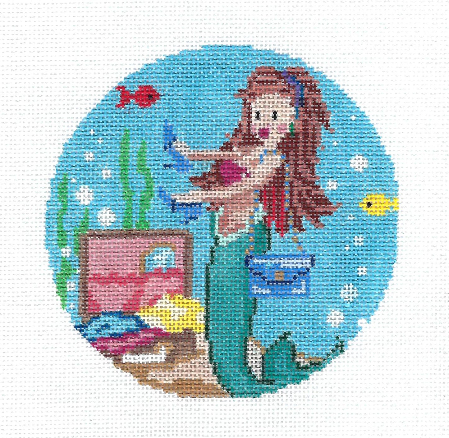 Round ~ Shopping Mermaid 18 Mesh handpainted 4.5" Needlepoint Canvas by Starke Art from CBK