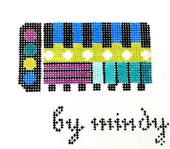 Canvas design measures 2" by 2.75", hand painted on 18 mesh white mono canvas.