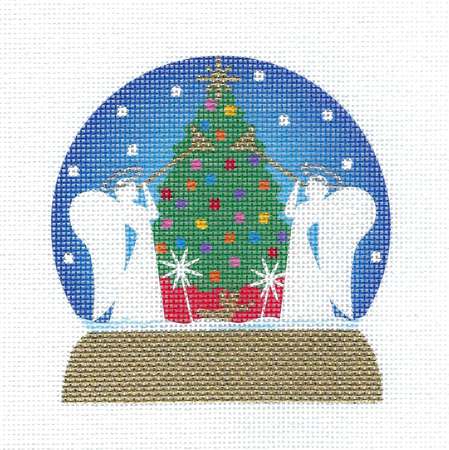 Christmas in New York ~ SNOW GLOBE in Rockefeller Center in New York City Ornament handpainted 18 Mesh Needlepoint Canvas by Pepperberry