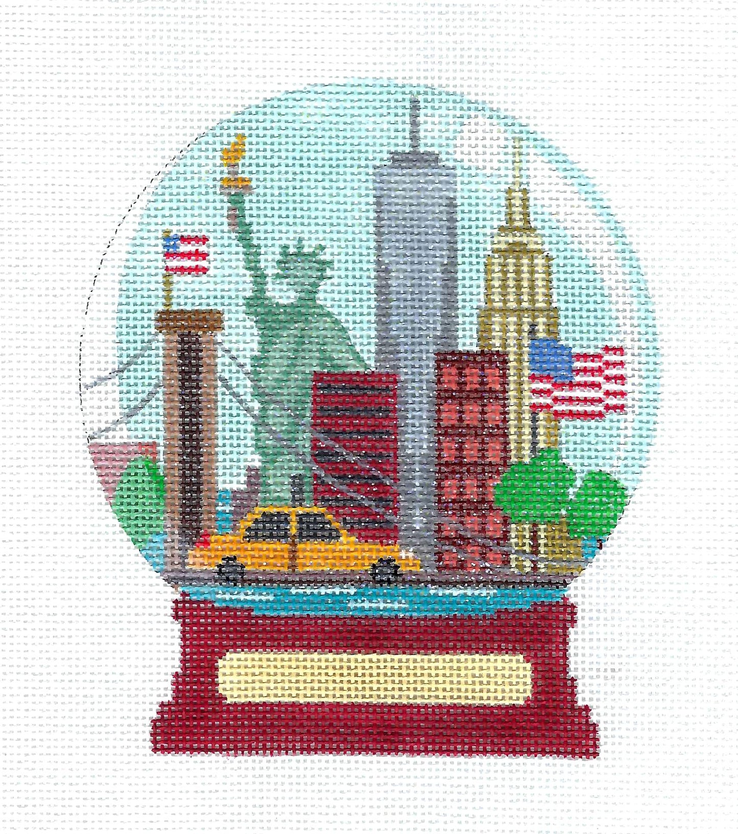 Travel Snow Globe ~ NEW YORK CITY handpainted 18 Mesh Needlepoint Canvas Ornament by Amanda Lawford
