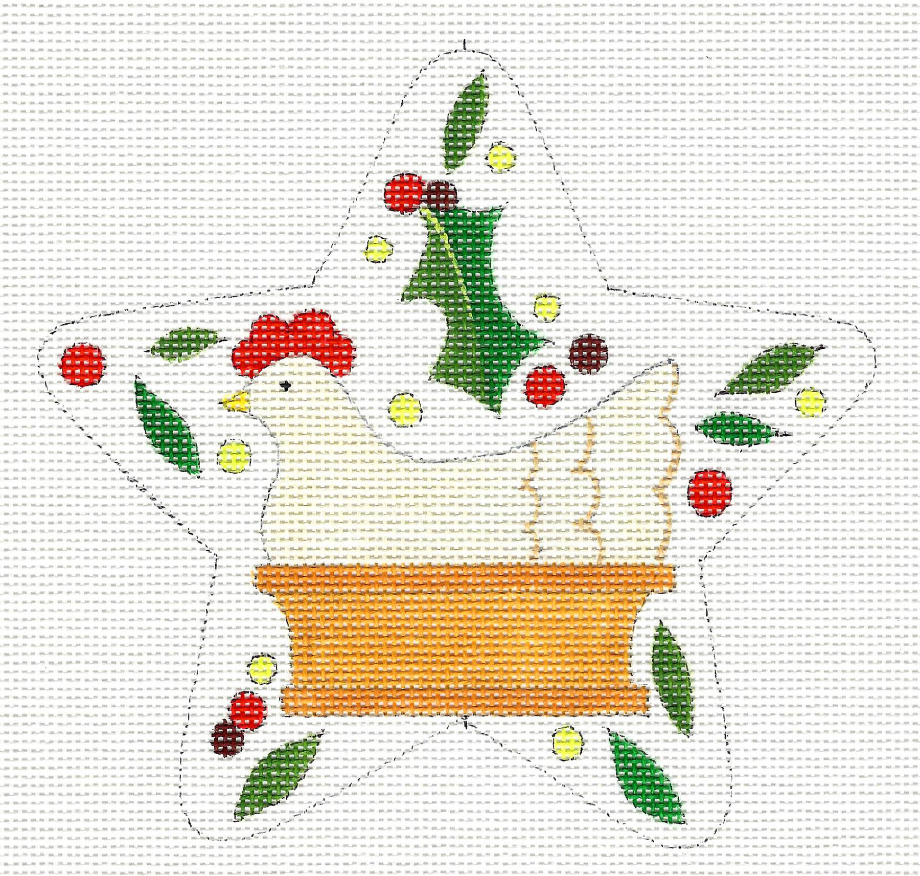 STAR ~ 12 Days "3 FRENCH HENS" Star HP Needlepoint Canvas by Raymond Crawford