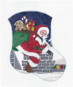 Stocking~Santa Up On The Rooftop Christmas Mini Stocking HP Needlepoint Canvas Danji