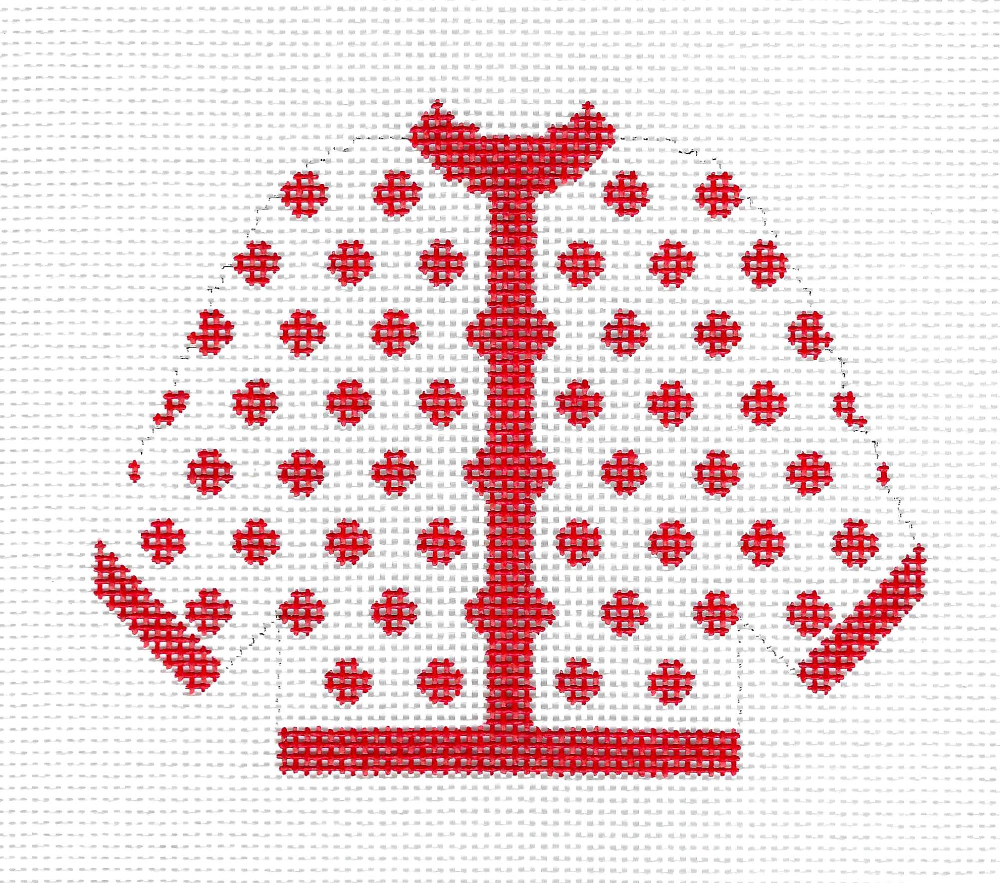 Offered for sale is a lovely Silver Needle Design needlepoint canvas Ornament, hand painted in a beautiful shade of White with Red Polka Dot design.