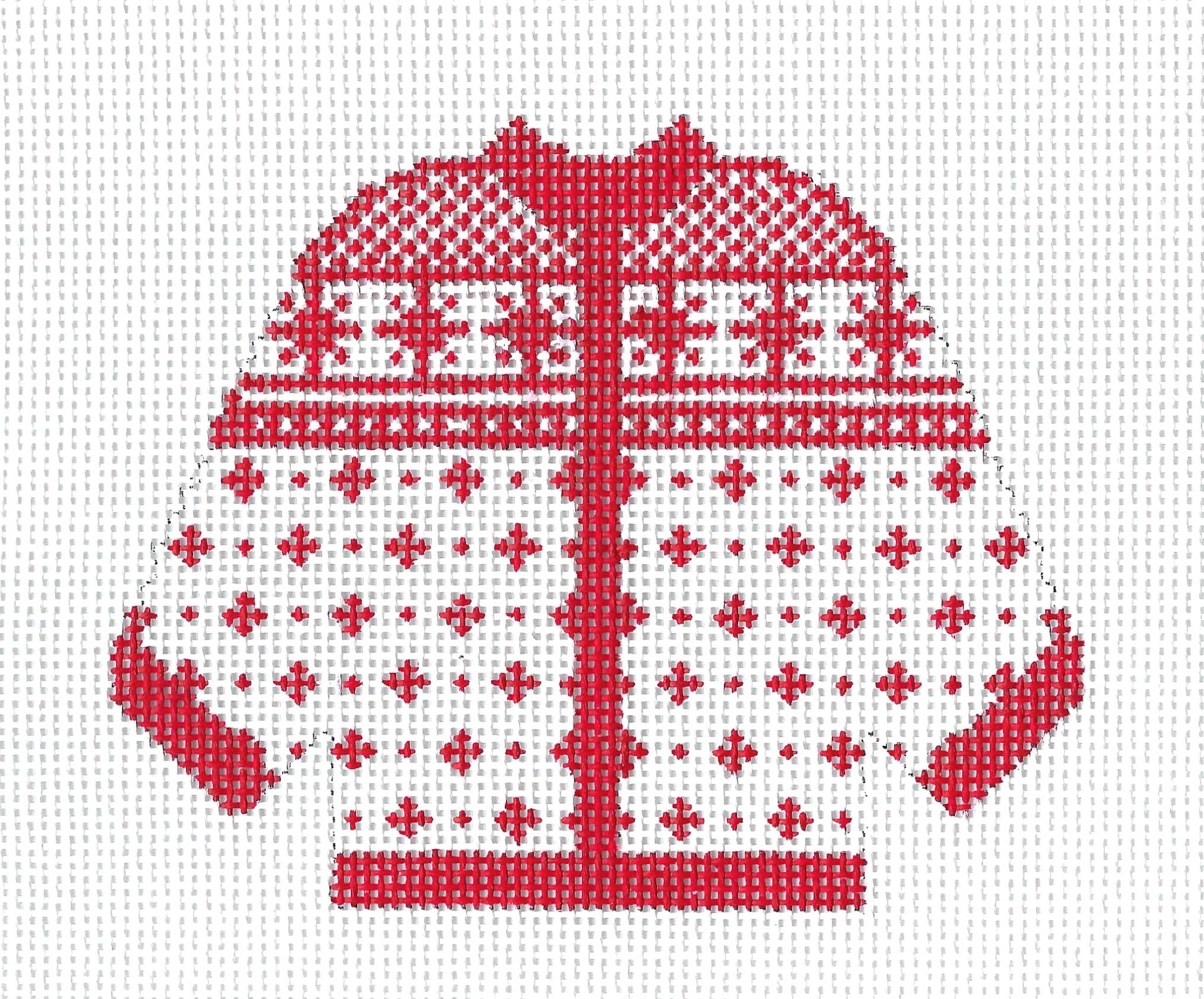 Sweater ~ Red & White CARDIGAN KNITTED SWEATER handpainted 13 Mesh Needlepoint Canvas by Silver Needle