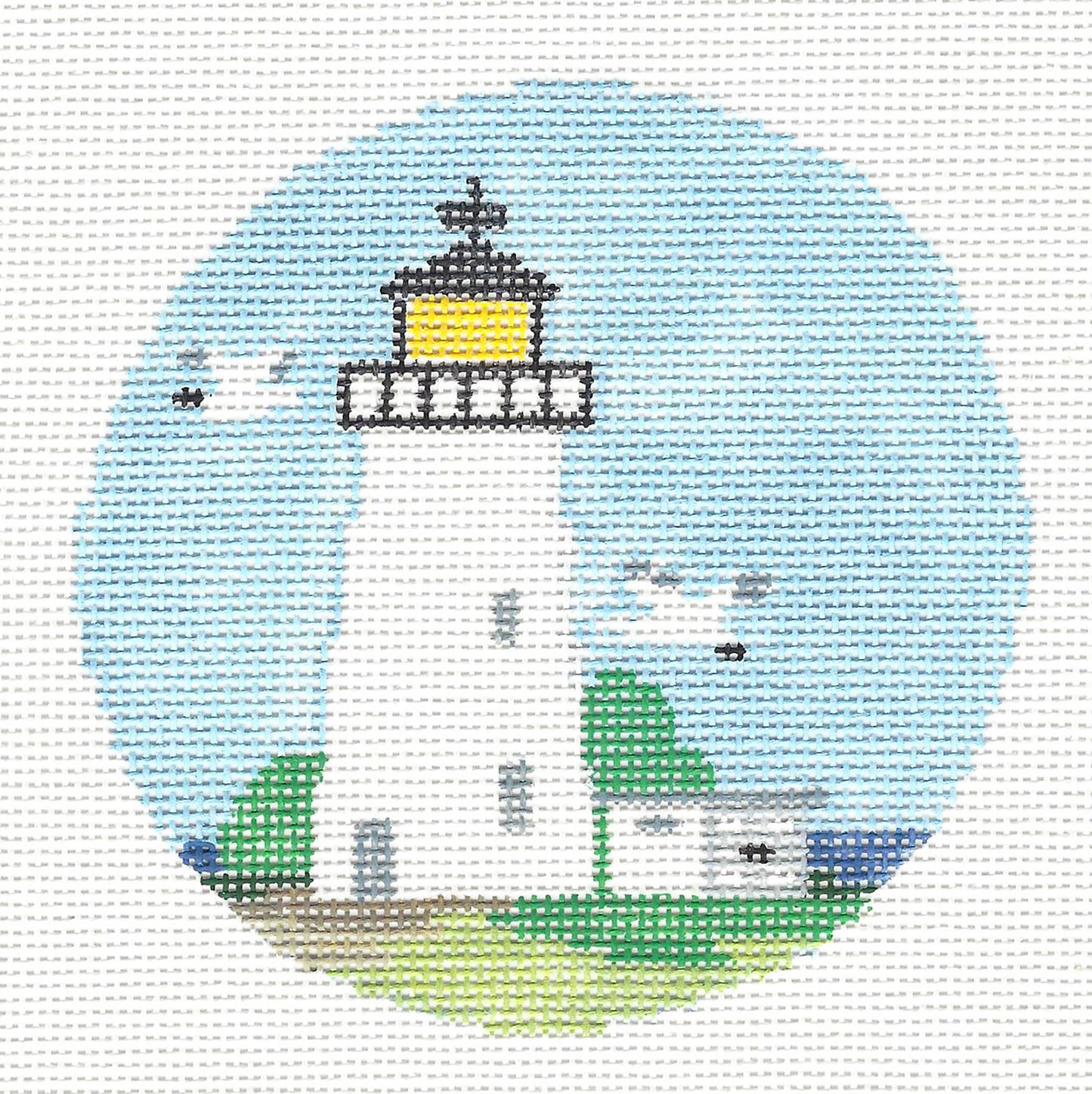 Travel Round ~ OCRACOKE LIGHTHOUSE, North Carolina handpainted 4" Needlepoint Ornament Canvas Kathy Schenkel
