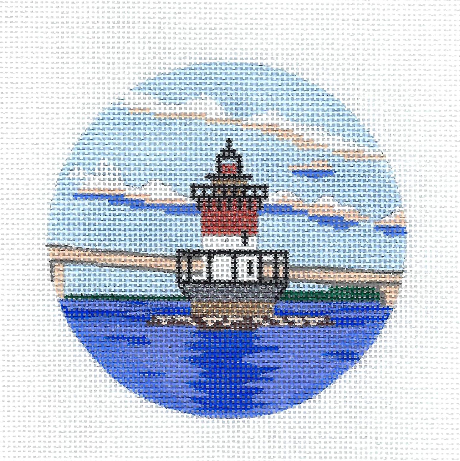Travel Round ~ "Plum Beach" Lighthouse in Rhode Island handpainted Needlepoint Canvas by Purple Palm
