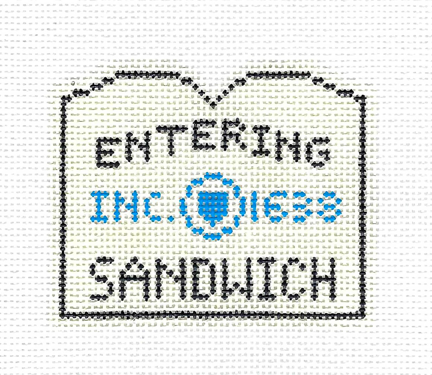 Travel Sign ~ SANDWICH, CAPE COD, MASS. SIGN Ornament HP 18 Mesh Needlepoint Canvas by Silver Needle