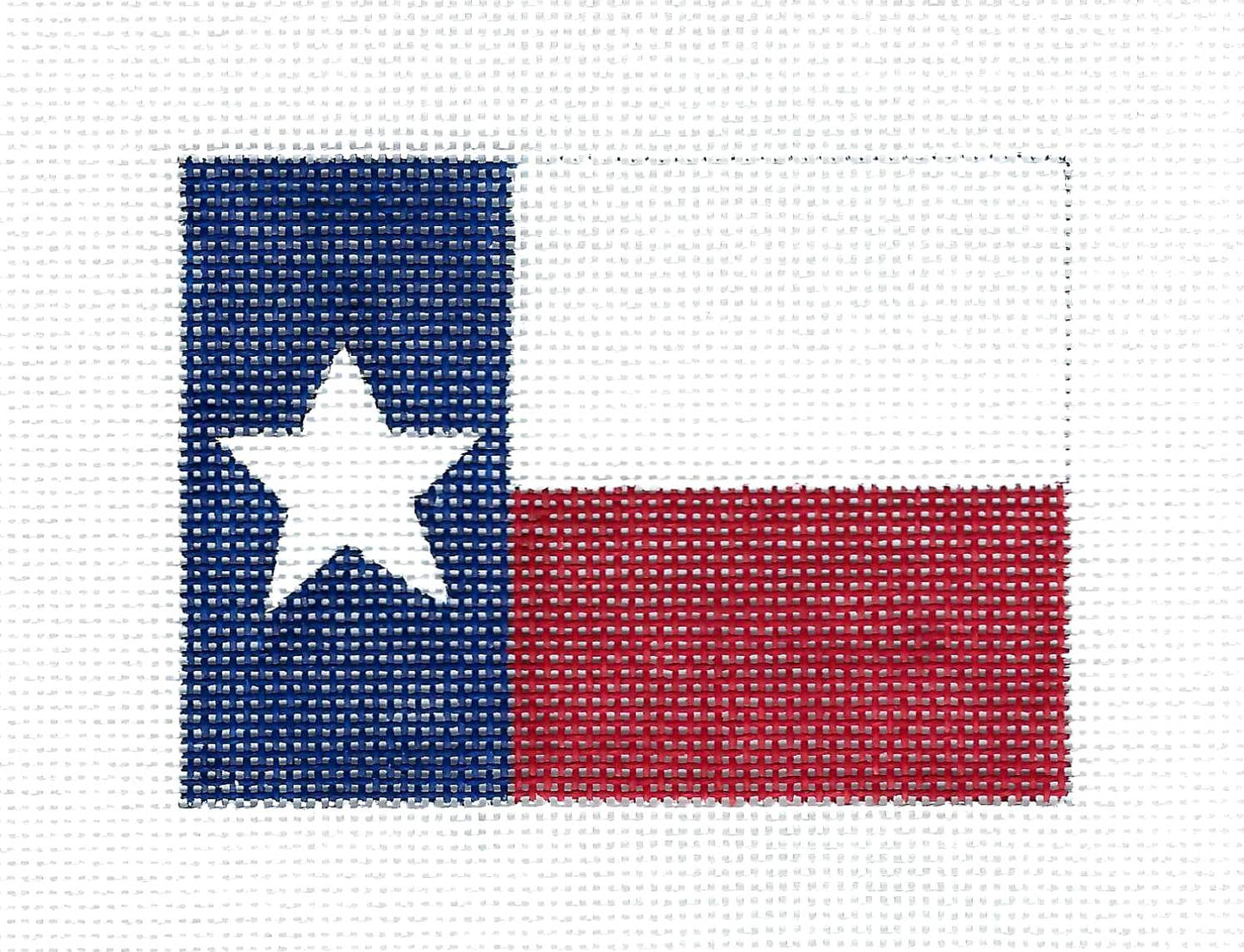 This design has the colors of the TEXAS STATE FLAG and the design measures 3.5" Wide by 2.5" Tall, on 18 mesh mono canvas. Overall canvas size is approx. 7.5" by 6.25".