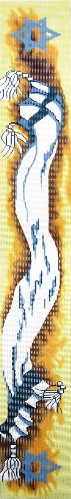 This gorgeous hand painted canvas is painted in the Holy City of Jerusalem on 13 mesh mono. The painted area is 3.5" by 32" with an overall canvas size of approximately 6" by 34".