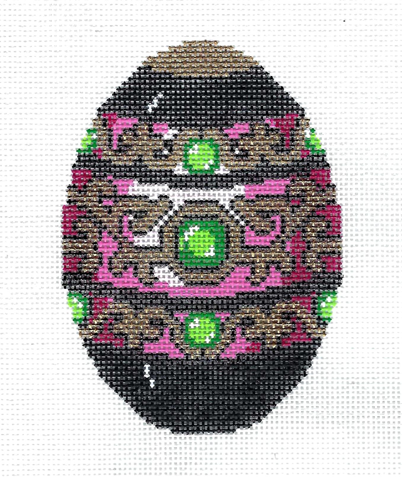 Faberge Egg ~ *EXCLUSIVE* Black, Emerald & Gold Jeweled Faberge EGG handpainted Needlepoint Canvas Ornament by LEE