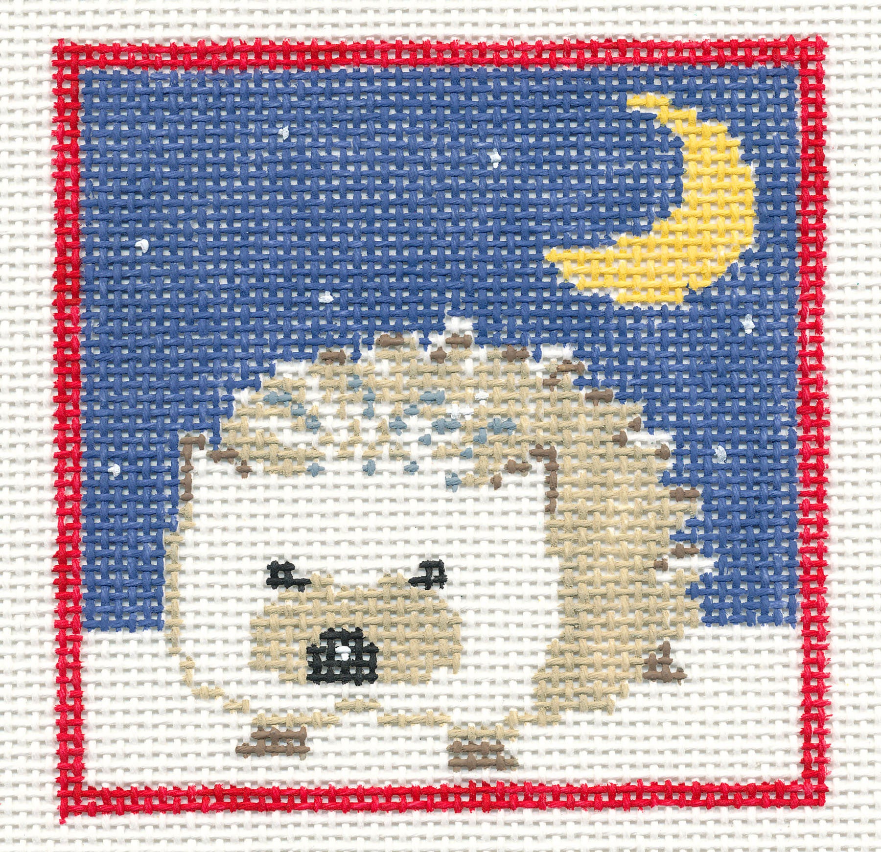 Hedgehog Canvas ~ Hedgehog in Night Sky handpainted Needlepoint Canvas by Kathy Schenkel