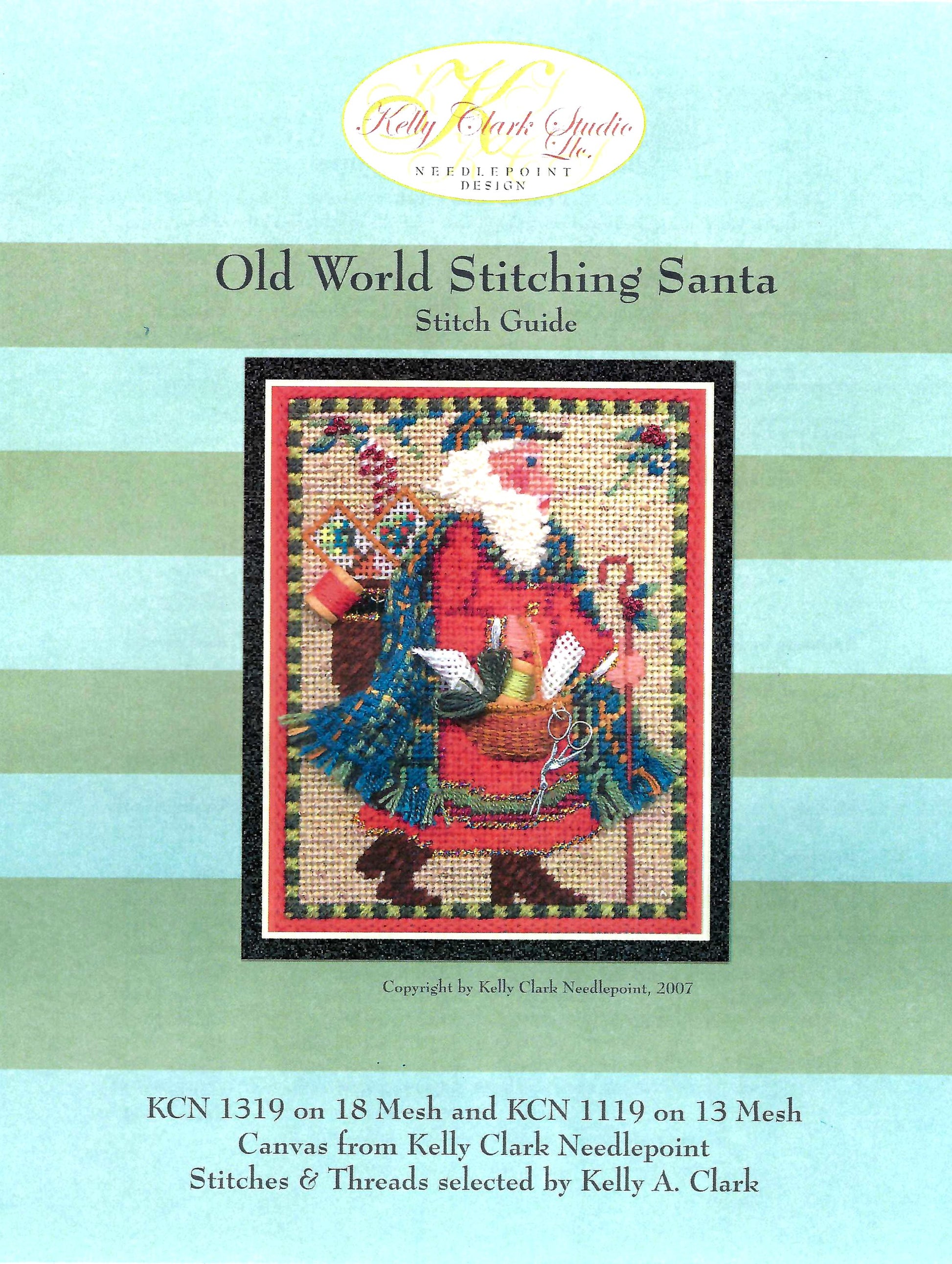Kelly Clark ~ Elegant Old World STITCHING SANTA CLAUS & Stitch Guide SET handpainted 18 Mesh Needlepoint Canvas by Kelly Clark