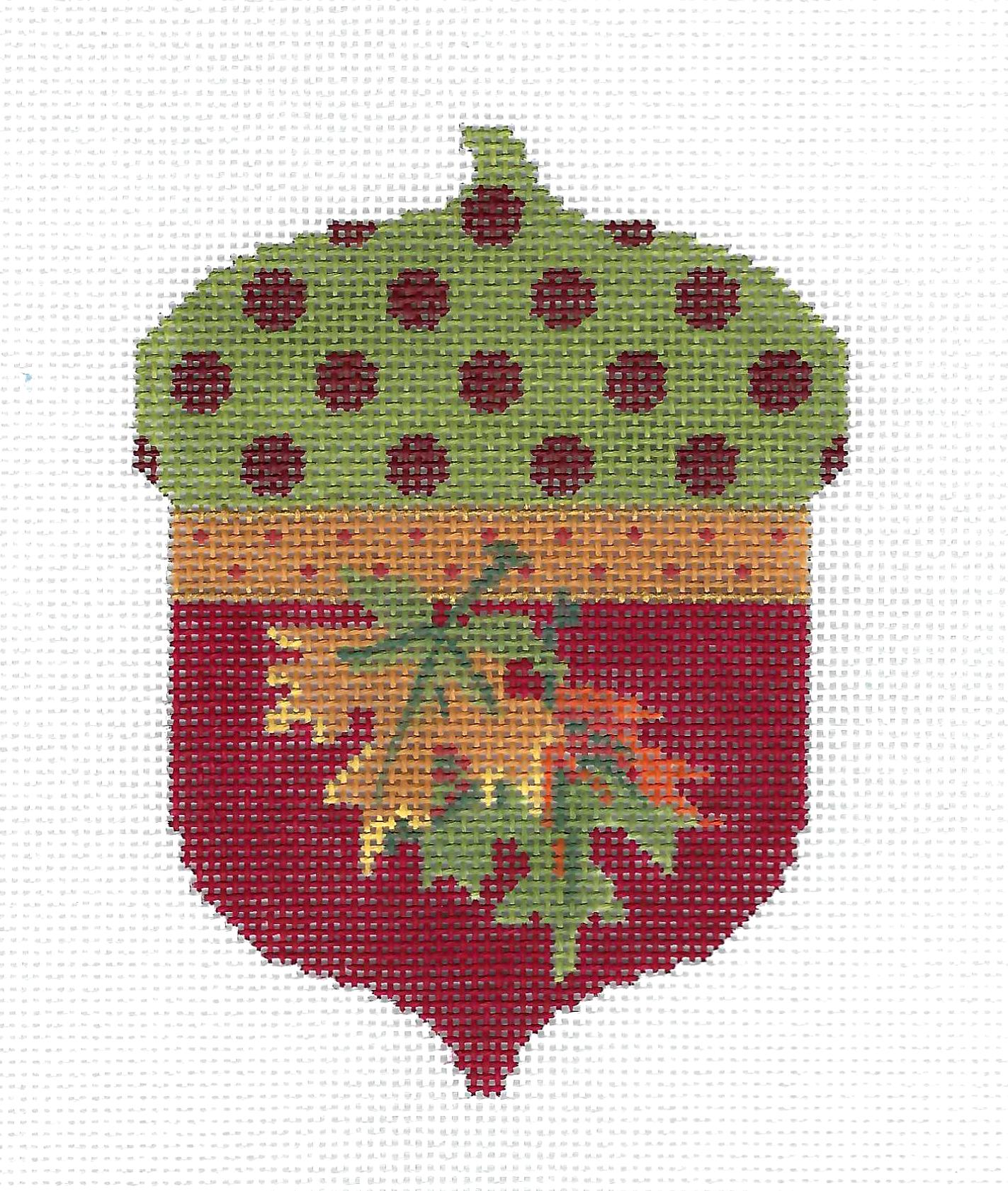 Kelly Clark ~ ACORN with Autumn Maple Leaves handpainted Needlepoint Canvas Ornament