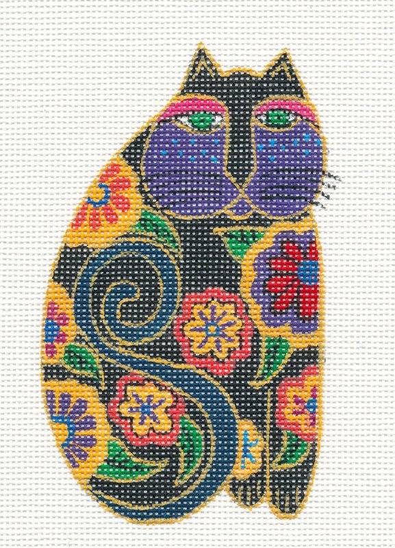 Laurel Burch ~ Handpainted Floral Black Cat handpainted 18 Mesh Needlepoint Ornament Canvas from Danji Designs