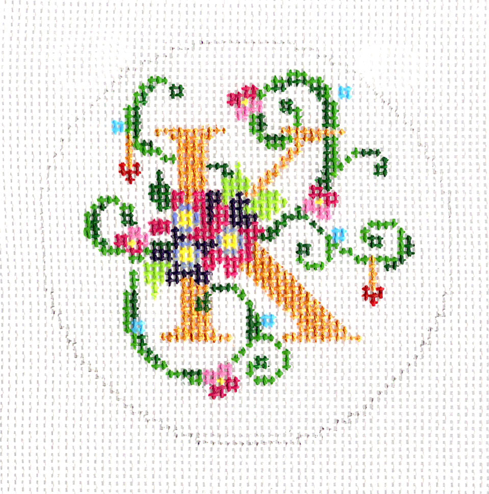 Alphabet ~ Letter "K" Floral Design 3" Rd. handpainted 18 mesh Needlepoint Canvas by LEE