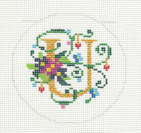 Alphabet ~ Letter "U" Floral Design handpainted Needlepoint Canvas 3" Rd. 18m by Lee