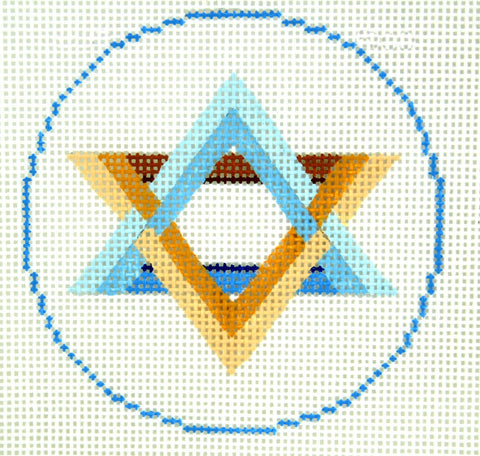 Judaic ~ Star of David Judaic Design 3" Rd. Ornament handpainted Needlepoint Canvas by LEE