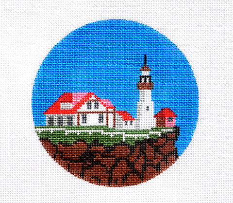 Travel Round ~ MAINE Coast with Lighthouse 4"Rd. handpainted 18 Mesh Needlepoint Canvas by Painted Pony