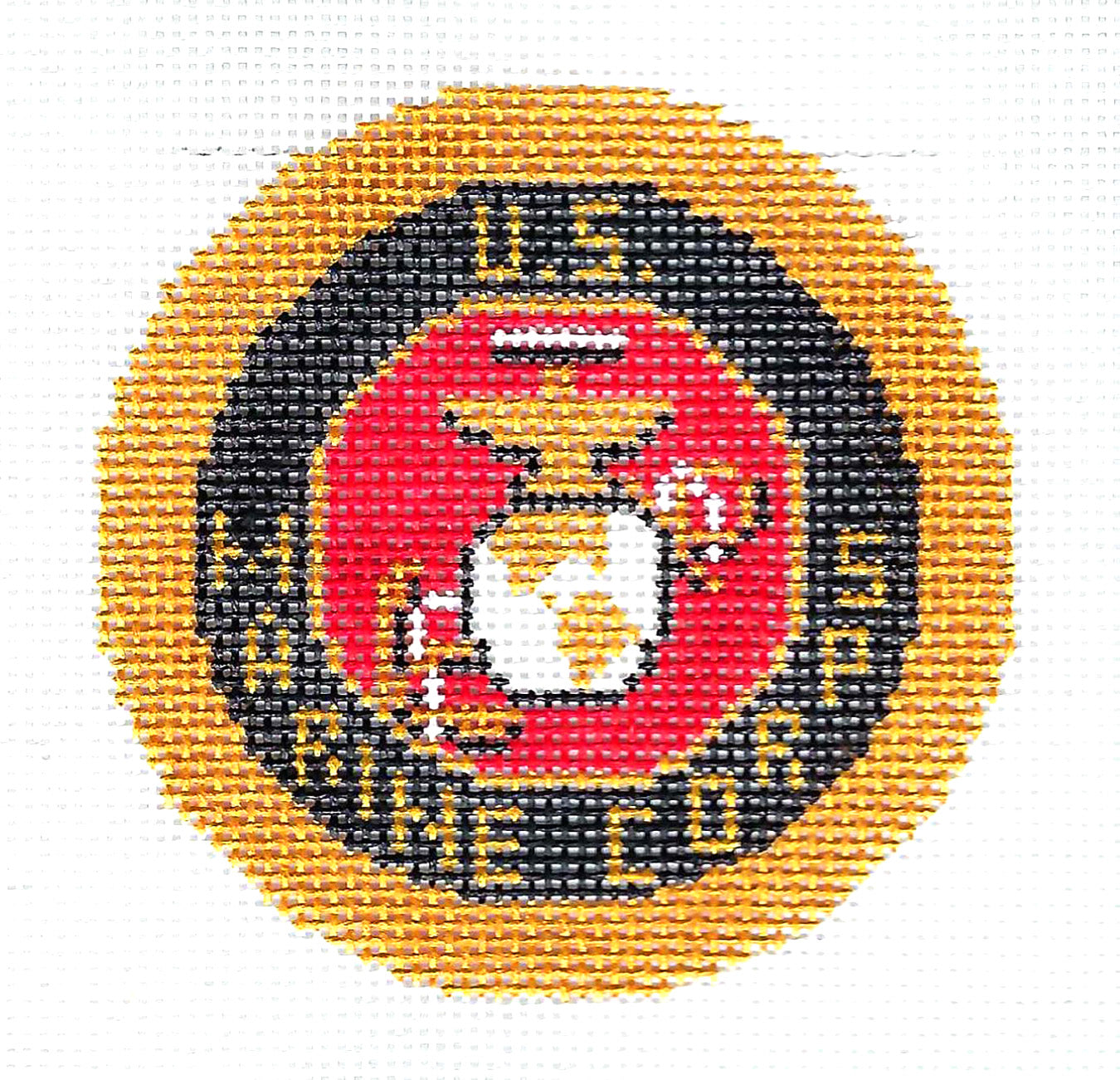Military ~ U.S. Marine Corps Military Emblem handpainted 18 mesh Needlepoint Canvas 3" Rd. by LEE