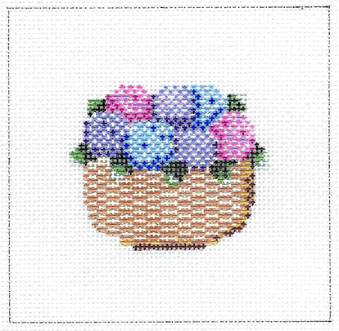 Nantucket Canvas ~ Nantucket Basket of Blue, Pink and Purple Hydrangea COASTER in a 4" square design by MBM Designs