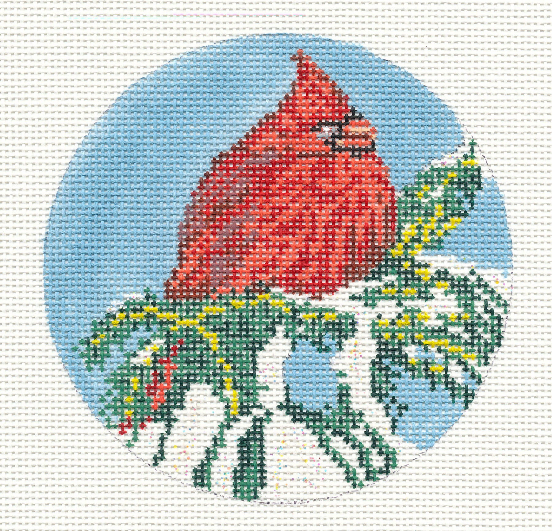 Bird Round ~ Red Cardinal Bird 4" Ornament handpainted Needlepoint Canvas by Needle Crossings