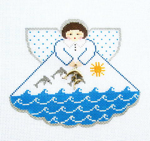 Angel ~ Ocean Dolphins Angel Ornament 18 Mesh handpainted Needlepoint Canvas by Painted Pony