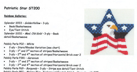 Star Canvas ~ Patriotic Star Canvas & STITCH GUIDE handpainted Needlepoint Canvas by Kathy Schenkel