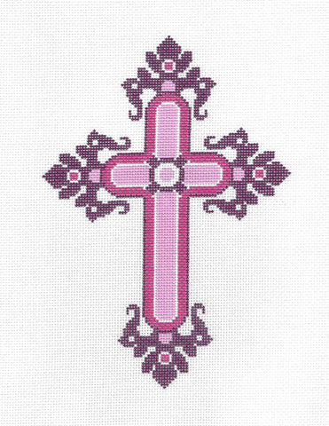 Cross ~ Elegant 7" Tall PINK, BURGUNDY & WHITE CROSS handpainted Needlepoint Canvas by LEE