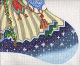 Offered is a Beautiful New needlepoint canvas design from LEE NeedleArt. A Large Christmas Stocking featuring an Elegant Santa Dressed in Blue and Pale gold, and surrounded by Stars. Santa holds a Staff and is flanked by snowflakes. This gorgeous Large Stocking Design is beautifully hand painted on 13 mesh, Zweigart Mono Canvas. The beautiful design is beautifully hand Stitch-painted and there is a painted color palette along the side. This stocking will be a Great Winter Stitching Project!!!!
