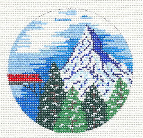 4" Round ~ Country of Switzerland~ handpainted 18 Mesh 4" Rd. Needlepoint Canvas by Painted Pony