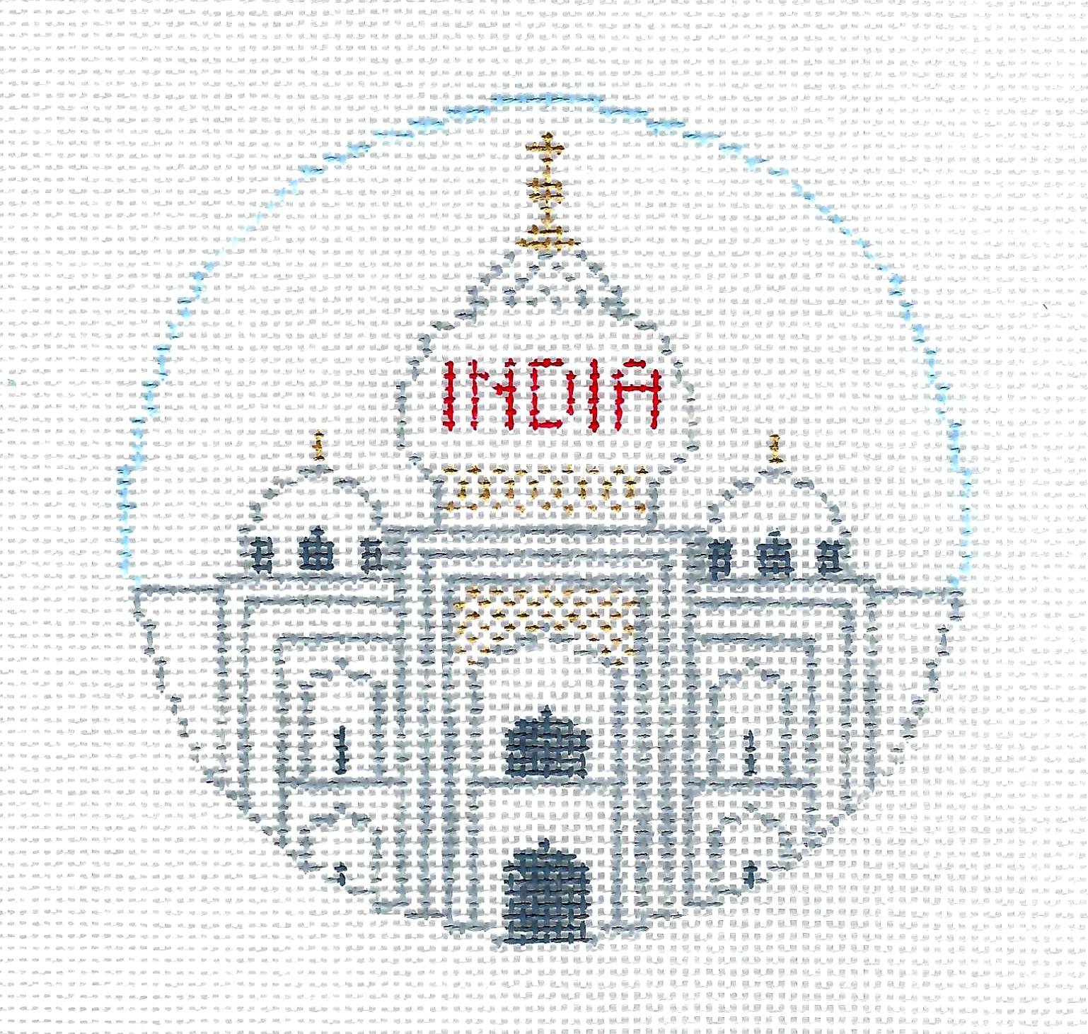 Travel Round ~ The Country of INDIA handpainted 4" Round 18 Mesh Needlepoint Canvas by Kathy Schenkel