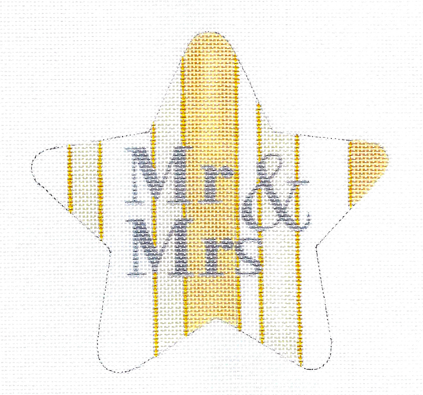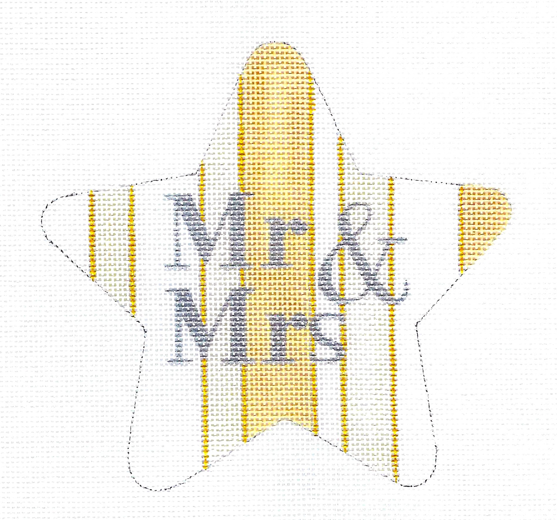 Wedding ~ "Mr. & Mrs. STAR" Golden Yellow, White & Silver Wedding or Anniversary 5.25" handpainted Needlepoint Ornament Ray. Crawford