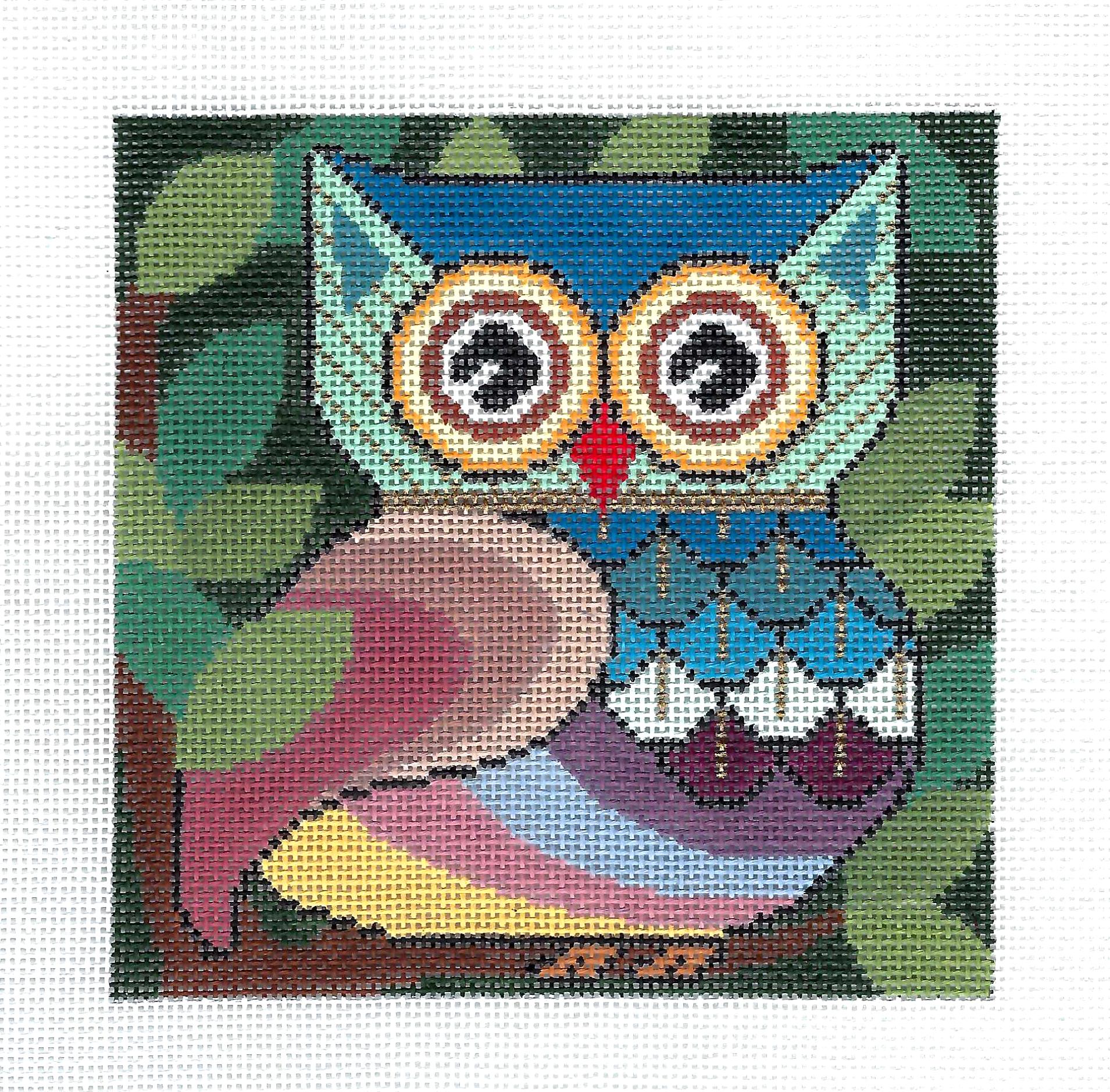 " Who Gives a Hoot " OWL handpainted 5" Square 18 mesh Needlepoint Ornament Canvas by JP Needlepoint