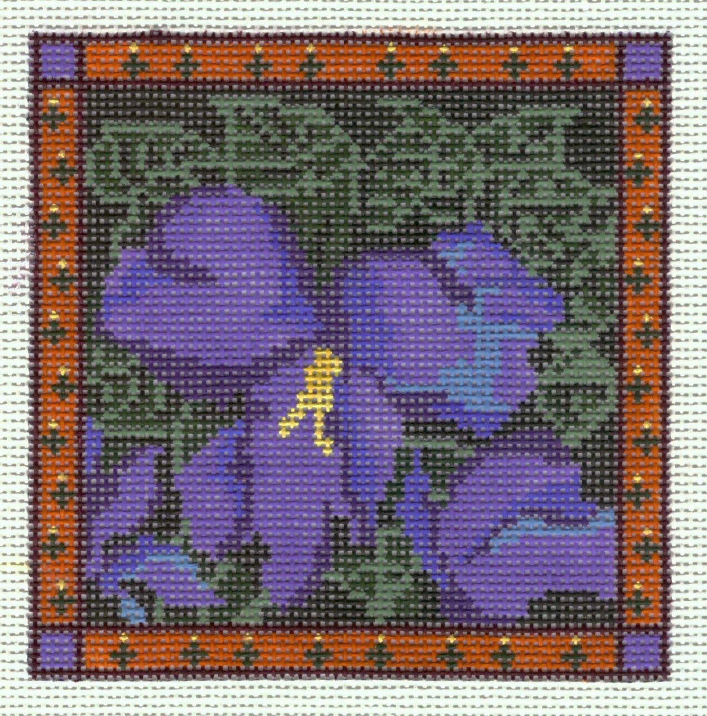 Canvas~ 4" Square Purple Violet Coaster handpainted Needlepoint Canvas~by Whimsy and Grace