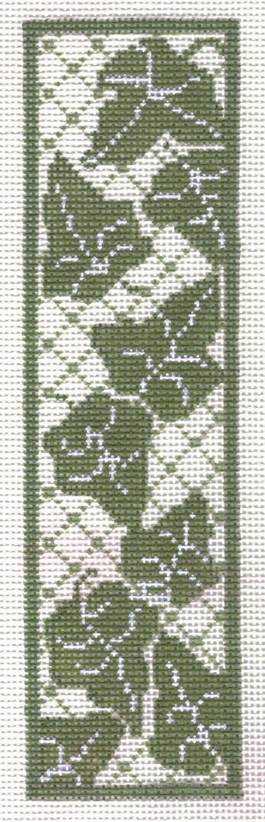 Bookmark ~ Green & White Ivy Lattice 7.25" Bookmark or CUFF Bracelet handpainted Needlepoint Canvas by Whimsy and Grace