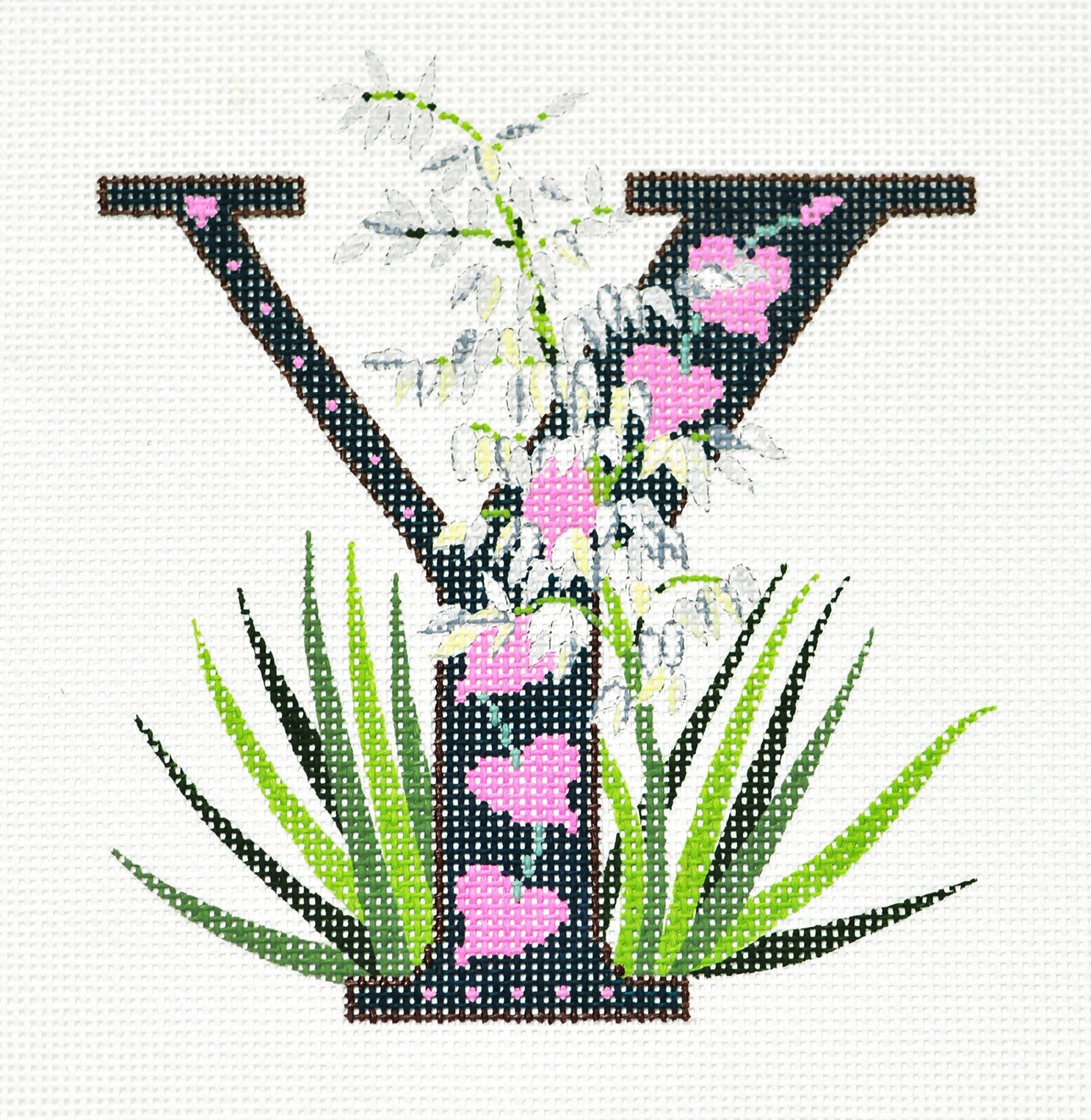 Alphabet Letter ~ Y with Floral Yucca handpainted Needlepoint Canvas Design by LEE