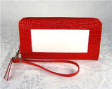 Red Alligator Embossed Leather Zip Closure Wallet.